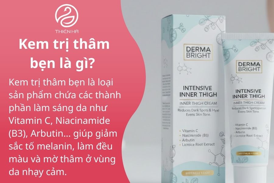 Kem trị thâm bẹn là loại sản phẩm chứa các thành phần làm sáng da như Vitamin C, Niacinamide (B3), Arbutin… giúp giảm sắc tố melanin, làm đều màu và mờ thâm ở vùng da nhạy cảm.