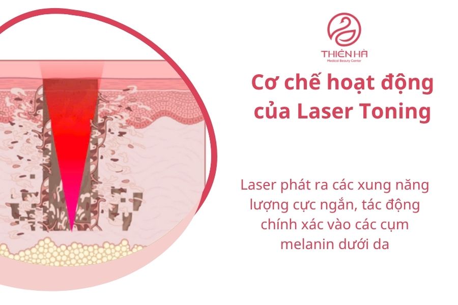 Laser phát ra các xung năng lượng cực ngắn, tác động chính xác vào các cụm melanin dưới da. Dưới tác động nhiệt, melanin bị phá vỡ thành các mảnh siêu nhỏ, sau đó được cơ thể hấp thụ và đào thải dần qua hệ bạch huyết.
